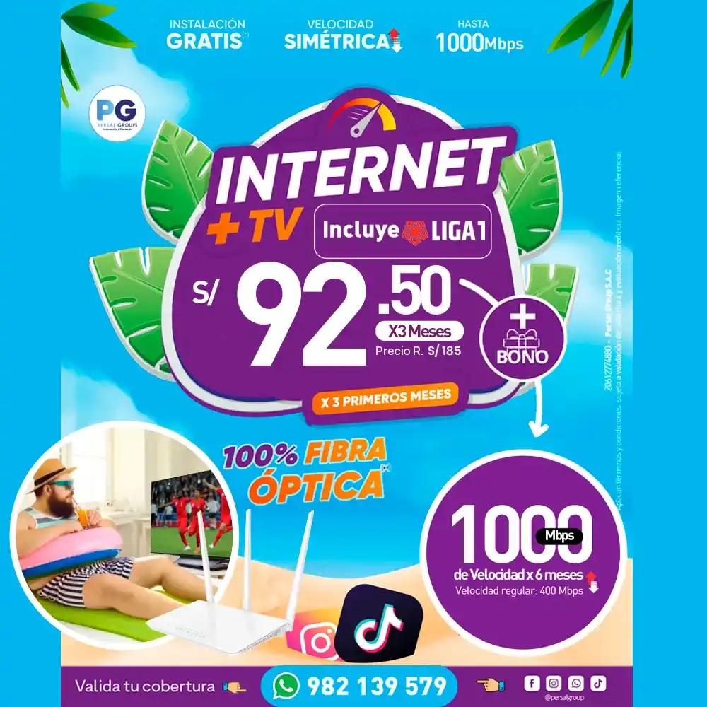 En PERSAL GROUP, nos especializamos en conectar a las personas con tecnología de vanguardia. Como distribuidor autorizado, ofrecemos una amplia gama de planes de internet para el hogar, garantizando que cada cliente disfrute de una experiencia de conectividad superior. Nuestra misión es brindar soluciones que no solo satisfagan las necesidades de nuestros usuarios, sino que también superen sus expectativas.